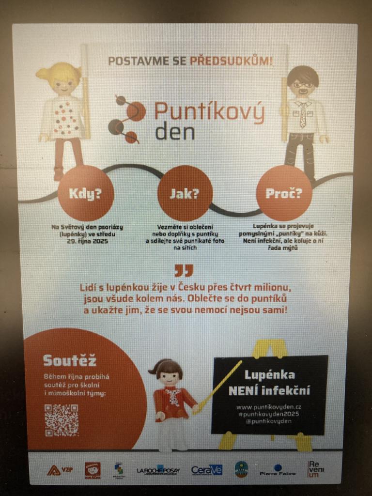 Akce - Puntíkový den = cílem je informovat děti a veřejnost o chronickém zánětlivém onemocnění (lupénka), jehož projevy jsou viditelné na kůži, ale postihuje i klouby a nehty.