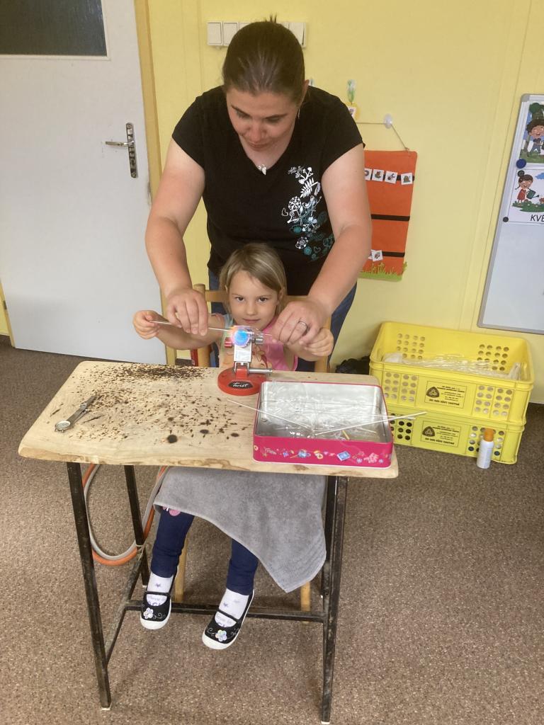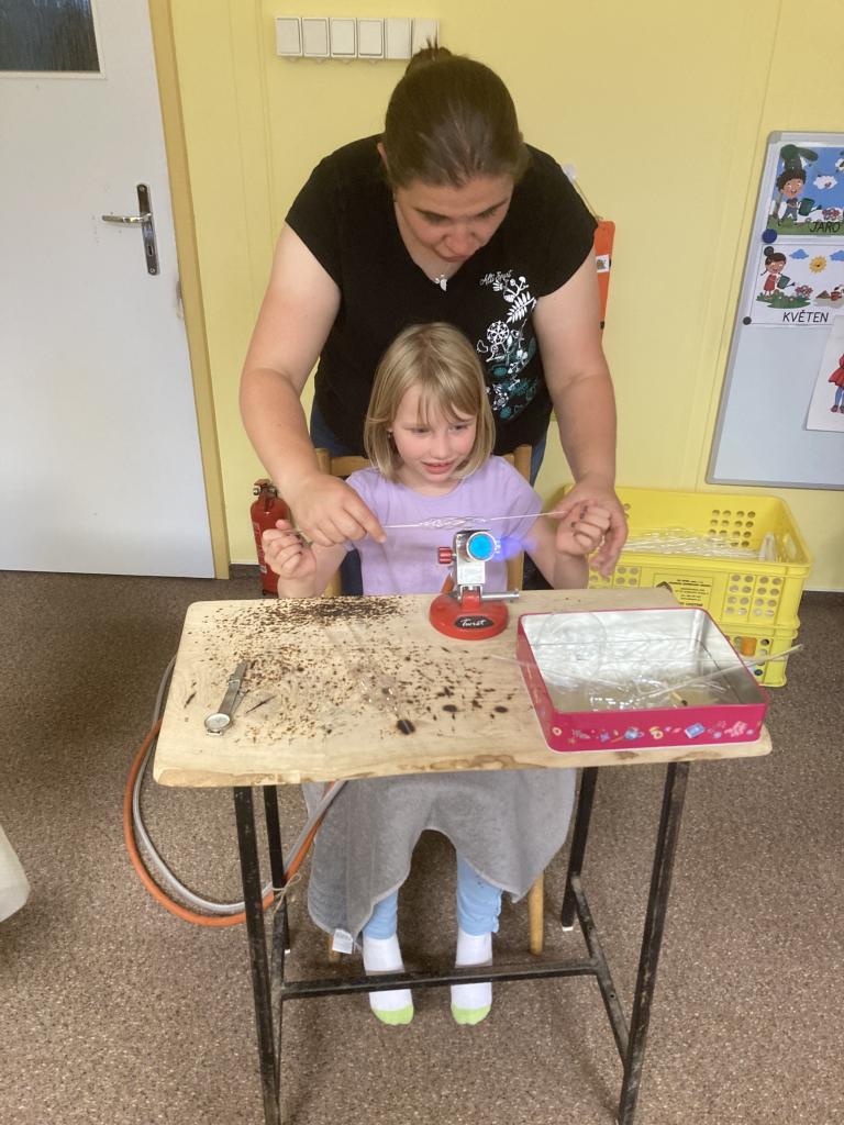 Uspořádali jsme ke "Dni matek" tvořivé odpoledne s tradiční českou výrobou foukaných skleněných ozdob vyráběných na sklářském kahanu. Součástí byla výroba ozdoby (koule nebo rampouch) a její ozdobení pomocí různých zásypů. Děkujeme paní Komárkové za organizaci této akce.