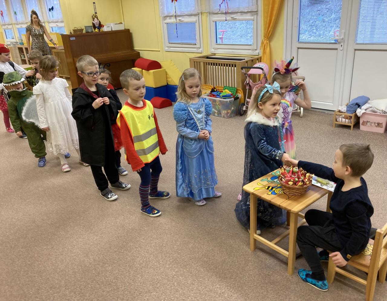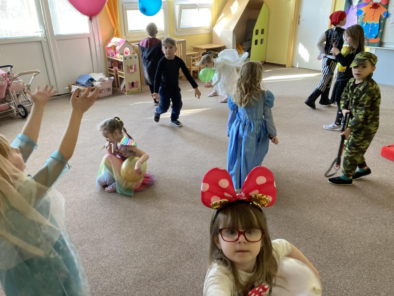V minulém týdnu u nás v mateřské škole probíhalo téma „Karneval“. Po celý týden jsme měli krásně nazdobenou třídu s hernou, dováděli jsme s nafouknutými balonky, frkačkami, děti mohly chodit v různých karnevalových převlecích. Tancovali jsme, cvičili, vyráběli různé obličejové masky. Prostě jsme si společně téma užili se vším, co ke karnevalu patří. Vyvrcholením byla přehlídka masek, karnevalové hry a minidiskotéka.